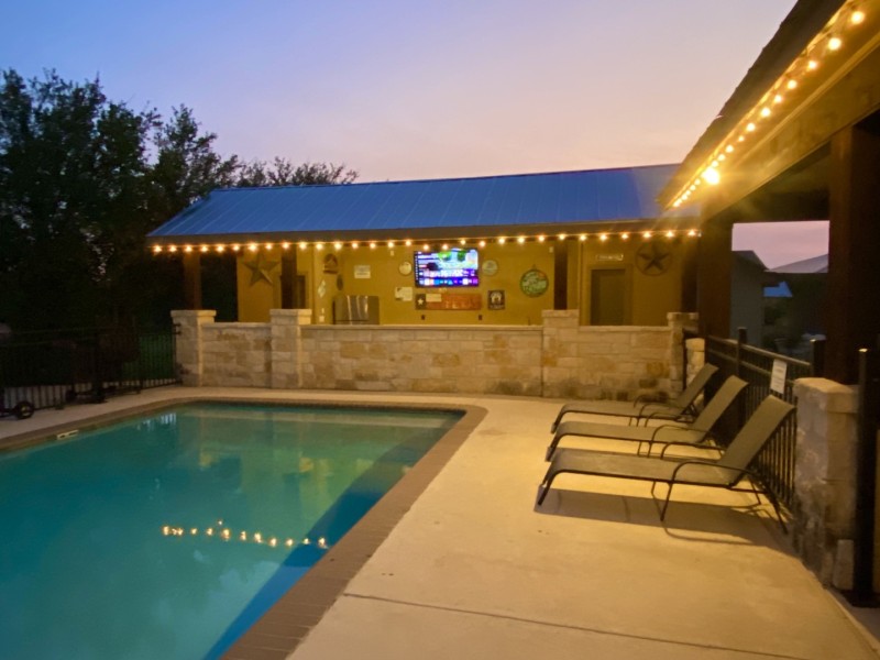 Hang on to your Stetson when you see the Texas sized, outdoor covered decks have plenty of room for everyone to relax or for al fresco dining. Perfect alfresco living! Watch your favorite sports teams or listen to music on the outdoor tv while relaxing under the night time party lights, perfect for the entire family. Form an expedition hike to the top of the hill for expansive views of Old Baldy at Garner State Park.