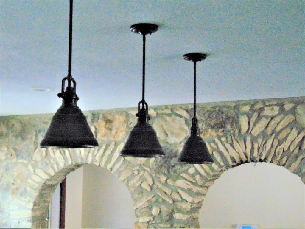 The standout center of this home is the recently remodeled, family-size kitchen with stainless appliances, double oven, lots of kitchen countertop space and large and granite kitchen island that holds 8 bar stools. There is also a picturesque window seat that looks out over the outdoor patio and ancient oak trees. Notice the original entrance with see through rock archways envisioned by the founder of Concan who built this stately home.