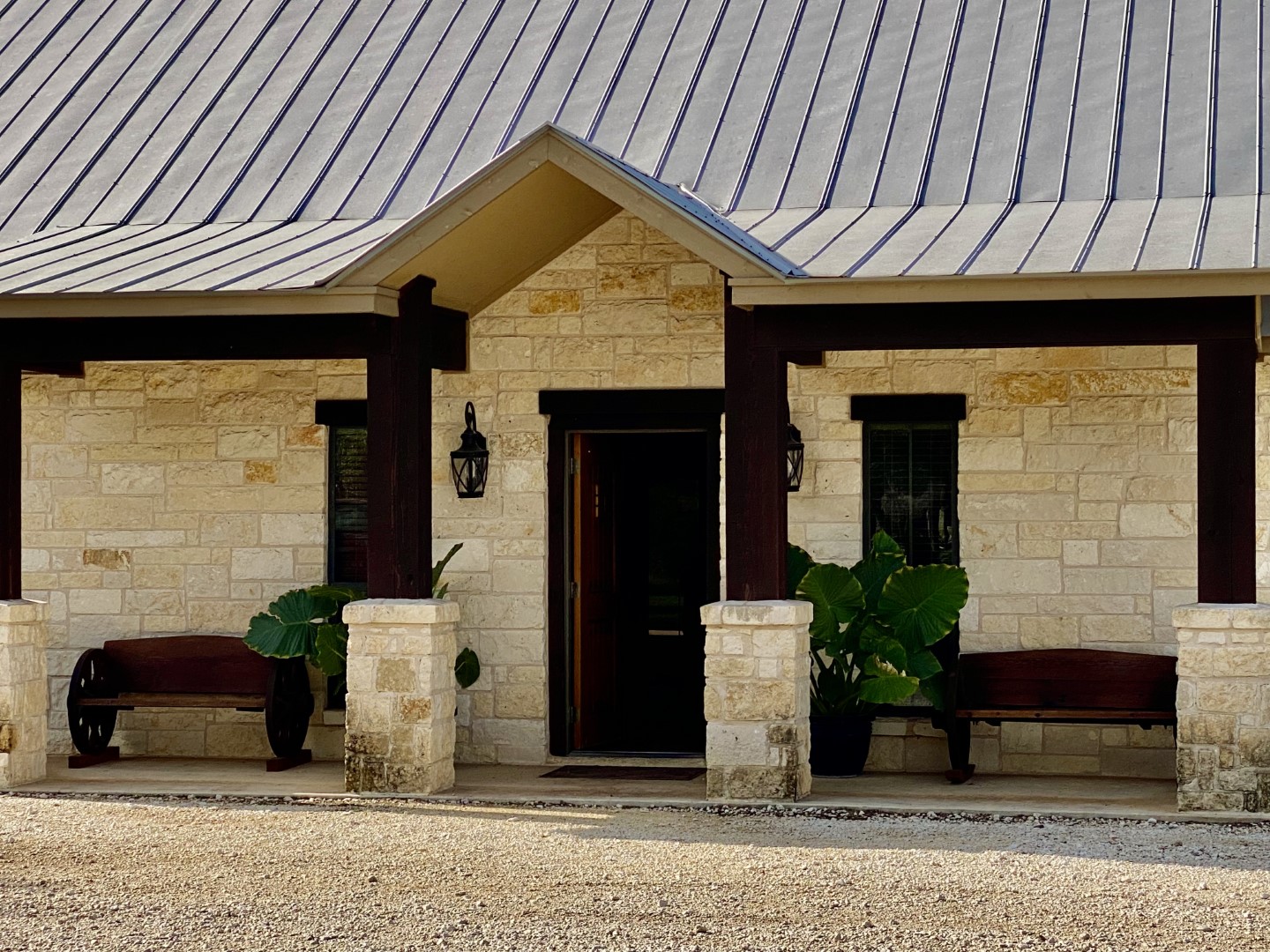 This handsome Lodge has a semi-circular driveway to hold all your trucks, trailers & tubes. Upon arriving you'll discover an inviting covered front porch with charming wagon wheel benches and planters filled with tropical plants that frame the custom peek-a-boo front door.