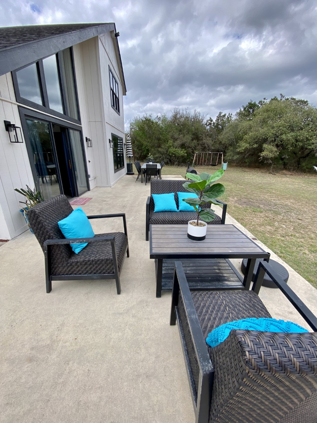 There's a volleyball pit, horseshoes, corn hole, tetherball, board games and more. Party lights add to night time fun. For those seeking a luxury home near everything Frio for a great price stay at Owls Nest!