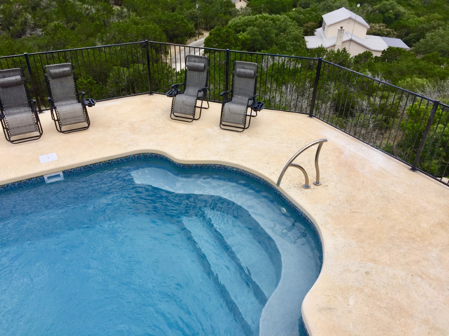 Ample outdoor pool space provides relief from the hot Texas sun and you'll appreciate the multiple seating areas of lounge chairs, tables and cozy seating arrangements that give you space to spread out while soaking up the views.